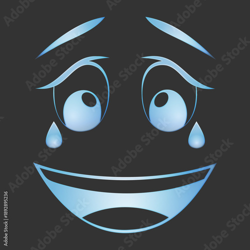 Sadness Expression Icon Design Featuring Blue Tears And Smiling Face Vector Illustration
