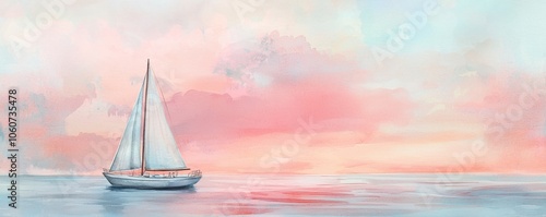 Sailboat drifting on calm waters under a pastel sunset sky.