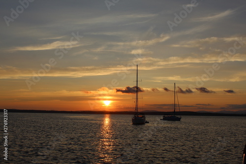 sailboats at sunset on the sea