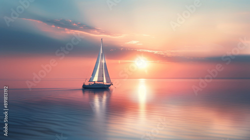 sailing boat at sunset"Single Sailboat in a Minimalist Seascape with Vast Open Sea"