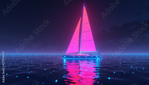 yacht, sailing, water, night, neon, light, tranquil, sea, boat, reflective, ocean, adventure, luxury, outdoors, sailboat, colourful, serenity, calm, summer, evening, leisure, exploration, activity, journey, transportation, maritime, illuminated, night time, peaceful, boat, romantic, vacation, relaxation, scenery, waterfront, vibrant, creative, artistic, nautical, travel, fun, lifestyle, night sky