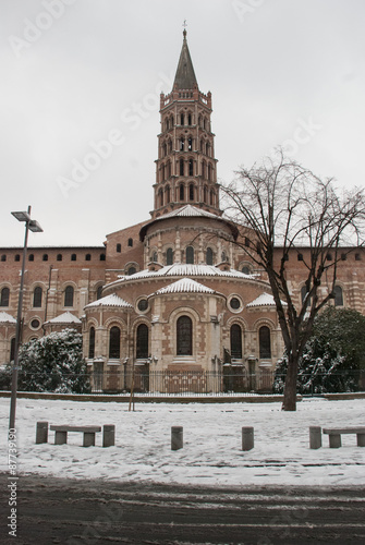 snow, winter, road, church, cathedral, toulouse, france, urban, landscape, city, town, car, white, tree