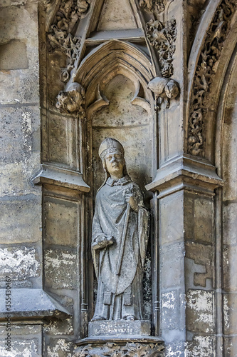 Saint-Germain-l'Auxerrois Church situated in Paris, France. Founded in 7 century, church rebuilt many times over several centuries. Sculptures at the entrance to the church.