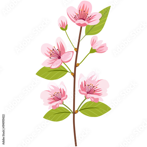 Sakura illustration with petals, Japanese spring floral background for pattern and frame design.