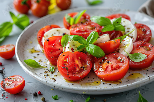 salad food caprese italian mozzarella tomato basil cheese fresh healthy vegetarian cuisine dish appetizer diet plate