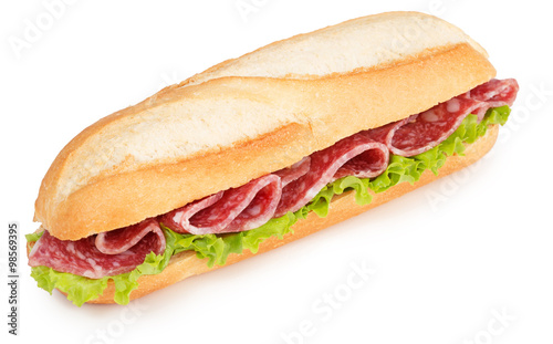 sandwich, salami, meat, lettuce, isolated, white, pepperoni, food, sub, snack, italian, sausage, lunch, deli, baguette, bread, submarine, closeup, bun, pork meat, sliced, meal, fresh, fast food, salad, healthy, ham, red, breakfast, vegetable, green, slice, background, nourishment, dinner, take out, whole, long, epicure, eat, picnic, leaf, cold, cut, unhealthy, diet, smoked