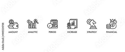 Sales growth banner web icon set vector illustration concept with icon of amount, analytic, period, increase, strategy, economy and financial