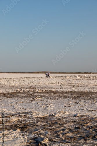 salt lake. sunset time. wide shot