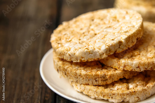 Salty rice crackers galettes with spices. Tasty salty healthy biscuits.