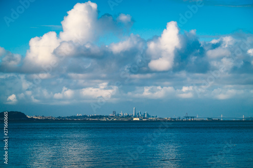 frisco, skyline, city landscape, downtown, landscape, cloudscape, cloudy, beautiful, sunset, serene, overcast, water, outdoors
