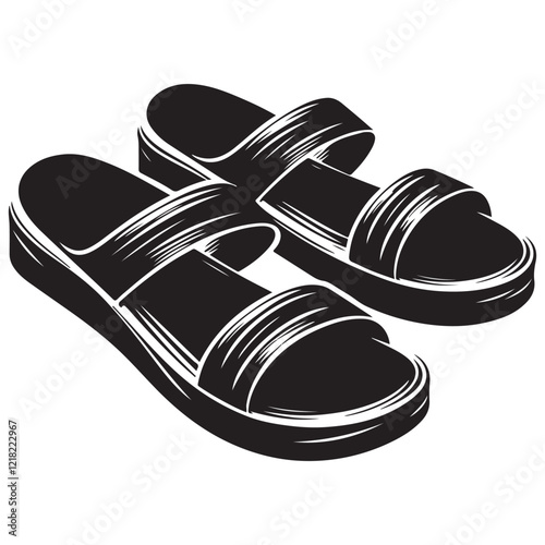 Sandals Silhouette Vector Illustration, Solid White Background.