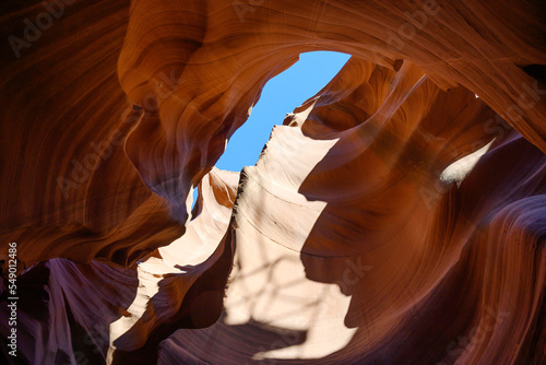 Sandstone cliffs in Navajo Upper Antelope Canyon, Arizona, USA.