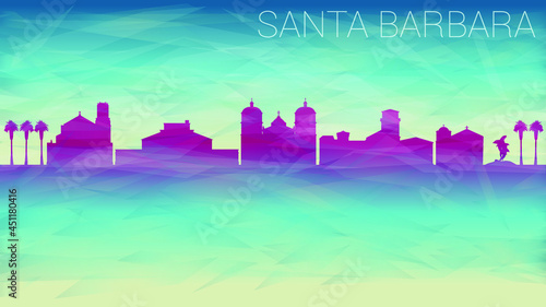 Santa Barbara California Skyline City Silhouette. Broken Glass Abstract Geometric Dynamic Textured. Banner Background. Colorful Shape Composition.