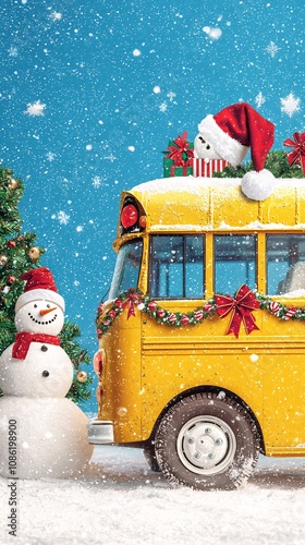 bus, school, school bus, yellow, transportation, christmas, cartoon, vehicle, transport, car, santa, snow, education, school bus, illustration, winter, toy, vector, isolated, children, tree, stop, truck, children, travel