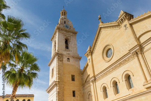 Santa Maria church and palm trees in the center of Xativa