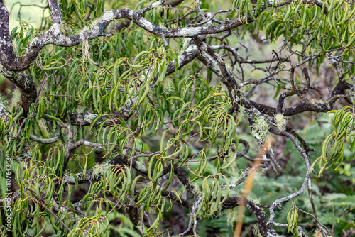 Santalum freycinetianum, the forest sandalwood, Freycinet sandalwood, or ʻIliahi, is a species of flowering tree in the European mistletoe family, Santalaceae. Kamanaiki Ridge Trail, Honolulu, Oahu