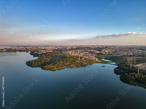 Sao Paulo, Sao Paulo, Brazil. June, 25th 2023. Aerial image of the Jardim Pedreira neighborhood in São Paulo. With the Elevação Pedreira Hydroelectric Plant and the Piratininga thermoelectric plant.
