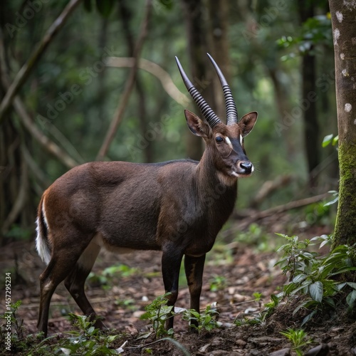 Saola Standing in a Lush Forest Environment During the Day Generative AI