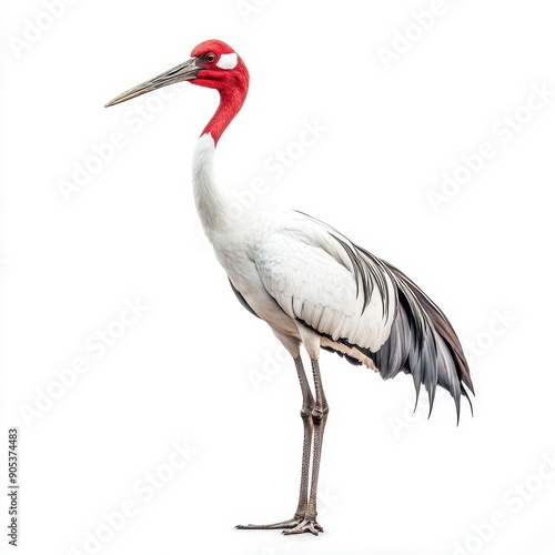 Sarus Crane Standing Elegantly on White Background in Natural Posture