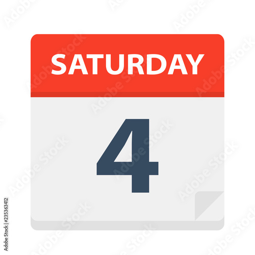 Saturday 4 - Calendar Icon. Vector illustration of week day paper leaf.