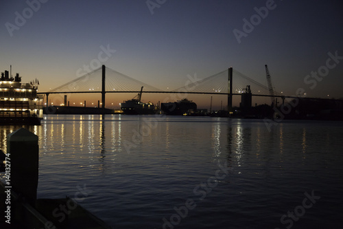 night, even, sunset, water, bridge, sky, evening, blue, light, darkness