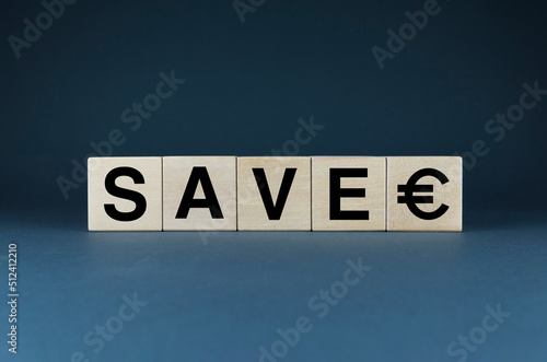 Save euro. Cubes form the words Save euro money. Business concept of money
