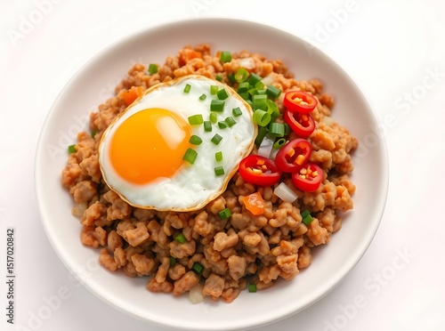 fried egg, minced meat, rice, food, dish, delicious, epicure, appetising, savoury, fresh, nourishment, yolk, protein, meal, cookery, fine dining, eatery, egg, lunch, dinner, breakfast, tasty, culinary, eat, cook, cooked, ingredient, chopped, garnish, serving, plate, onion, pepper, chili, carrot, favor, healthy, diet, eating, enjoyment, mealtime, homemade, prepared, arrangement, artistic