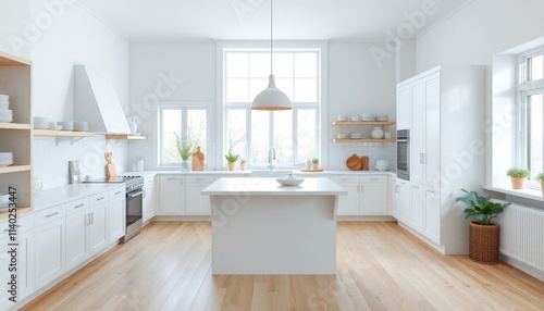 Scandinavian Style - Kitchen Interior Design With Scandinavian Concept - Hotel Kitchen - Apartment Kitchen Interior With Table - Interior Design