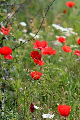 field, flower, red, poppy, summer, nature, spring, meadow, flower, green, poppy, plant, grass, bloom, garden, blossom, beautiful, beauty, landscape, flora, colours, tulip, sun