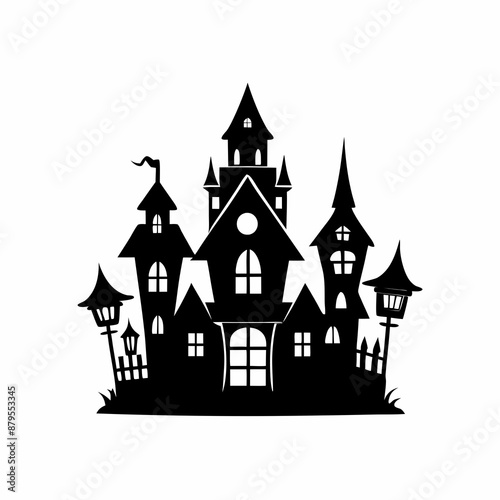 Scary Halloween house vector illustration, Halloween haunted house vector art, haunted house silhouette, haunted house