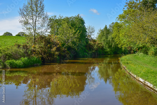 Scenic canal view of the Llangollen Canal near Whitchurch, Shropshire, UK