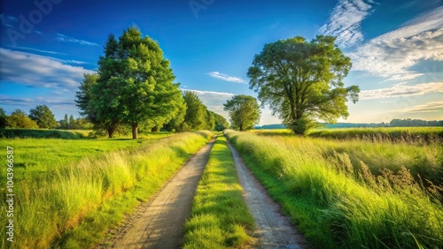 country road, grass, tree, blue skies, nature, landscape, rural, peaceful, tranquil, countryside, scenery, sunny day, beautiful, environment, travel, destination, summer