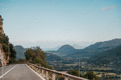 serra, port, majorca, majorca, spain, mediterranean, europa, road, asphalt, guard rail, perspective, vale, farmland, countryside, hill, mountain, coastline, bay, sea, horizon, landscape, nature, outdoors, scenic, travel, tour tourism, destination, infrastructure, transport, mobility, nobody, balearic islands