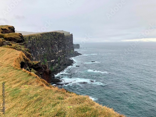grassy, cliff, sea, iceland, cloudy, day, gloomy, weather, outdoors, nature, landscape, coastal, shore, beach, horizon, water, rocky, scenic, scandinavia