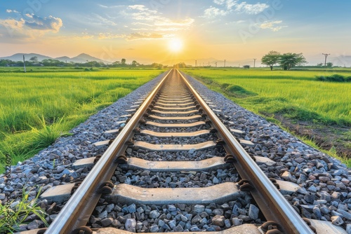 Scenic view of a railway track at sunset under the captivating hues of a golden sky