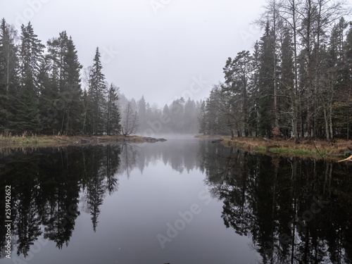 Scenic view of a river in autumn. Farnebofjarden national park in Sweden.