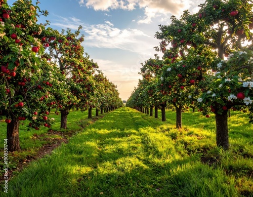 apple, fruit farm, tree, fruit, garden, agriculture, nature, rural, landscape, season, green, blossom, sunlight, harvest, growth, spring, summer, beauty, fresh, plant, sunshine, field, dirtied, horticulture, scenic, tranquil, vibrant, greenery, farming, blooming, environment, peaceful, pathway, tree branch, foliage, sky, cloud, idylli, warm, countryside, nutrient, fertile, organic, scenic route, background