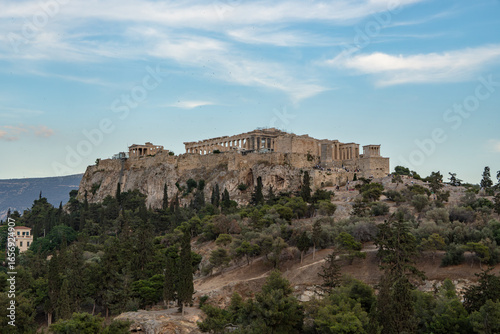 Scenic view of the Acropolis from below in Athens, Greece