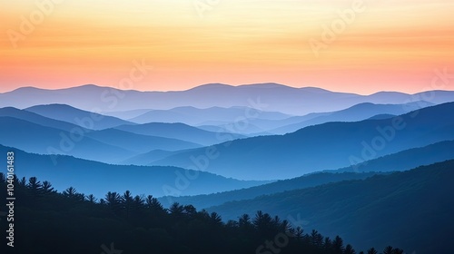 Scenic view of the Appalachian Mountains at dawn, with ample space for text
