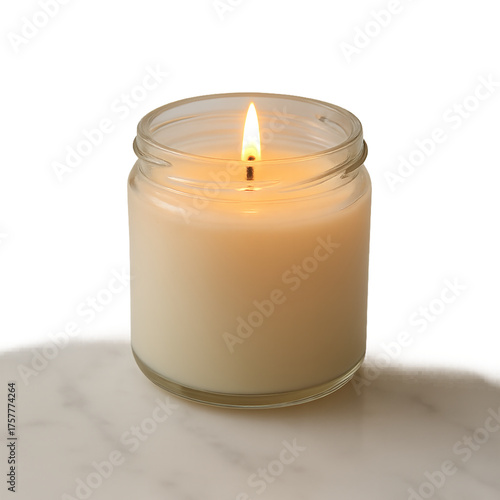 Scented Glass Jar Candle on Marble Countertop with Ambient Glow, Isolated Background