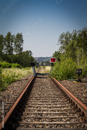 rail, rail, transport, terminus, bollard, tree, meadow