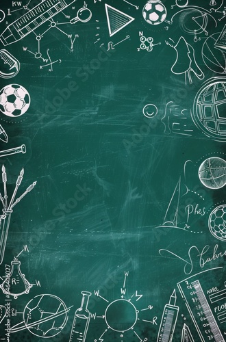 School board with chalk drawing math and chemical formulas, AI generated