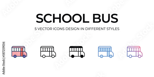 School Bus Icon Design in Five style with Editable Stroke. Line, Solid, Flat Line, Duo Tone Color, and Color Gradient Line. Suitable for Web Page, Mobile App, UI, UX�and�GUI�design.