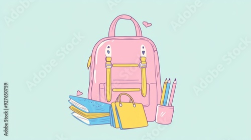 School equipment, ready to go, open the bag, pencil box, notebook, new bag, back to school, children, a new starting point, spread your wings, towards glory