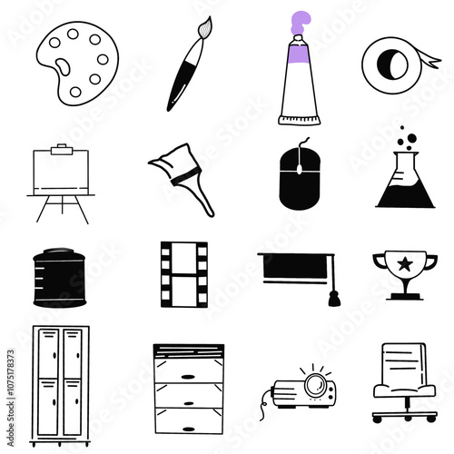 icon, set, vector, icon, symbol, illustration, signs, silhouette, black, book, business, design, computer, hotel, industry, travel, food, collection, pen