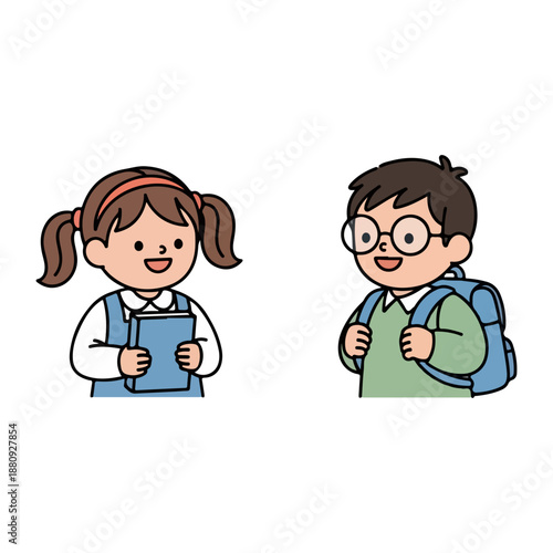 school, children, student, education, learning, boy, girl, primary, elementary, kindergarten, cartoon, vector, illustration, drawing, children, young, happy, smiling, book, backpack, studying, pupil, uniform, friends, friendship, class, classroom, cognition, academic, cute, childhood, youth, back to school, preparation, homework, test, reading, write, study, lesson, fun, cheerful, adorable, diverse, simplistic, minimal, simple, outline