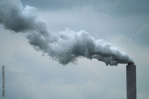 Schornstein von Kohlekraftwerk mit Rauchwolke - Stockphoto