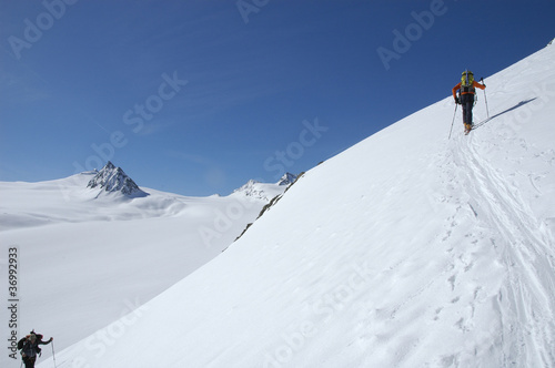 austria, roped party, ski, ice, glacier, moraine, rock, alpinism, climb, mountain, hike, hiking, winter, alpes, snow, burrow, backpack, ski, crampon