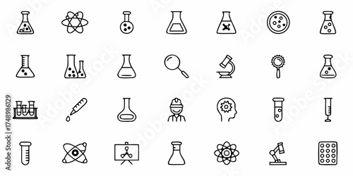 Science Icons Collection Showcasing Research and Discovery, Perfect for Educational Materials and Chemistry Presentations, Atomic Research and Scientific Exploration