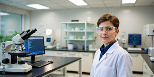 scientist, laboratory, research, medicine, science, laboratory, technology, biology, woman, chemistry, development, health care, medicals, innovation, future, discovery, engineering, pharmacy, analysis, experiment, professional, intern, student, education, health, solution, equipment, microscope, computer, workspace, modern, clean, white coat, biochemistry, pharmaceutical, diagnostic, datum, result, workflow, serious, intelligent, focused, determined, confident, pose, portrait